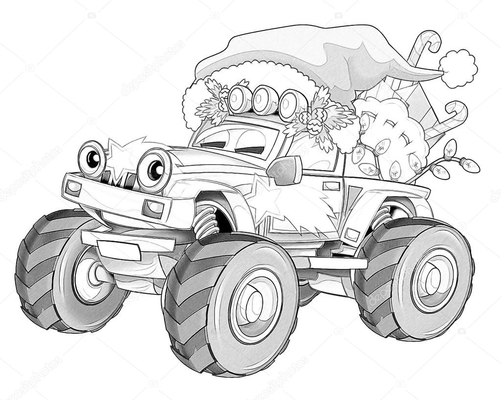 Coloring Page Christmas Car Stock Illustration By illustrator hft 53736339