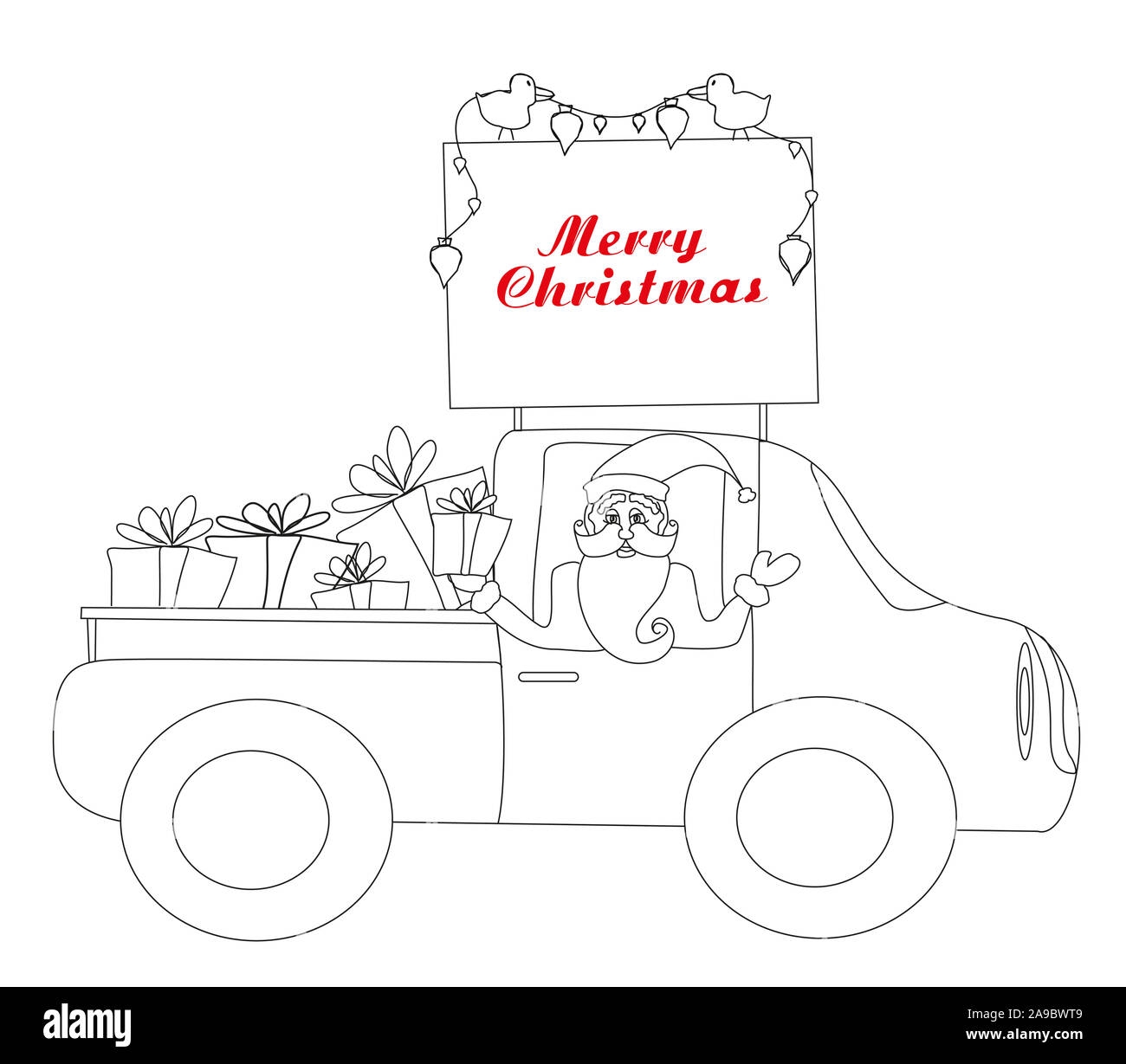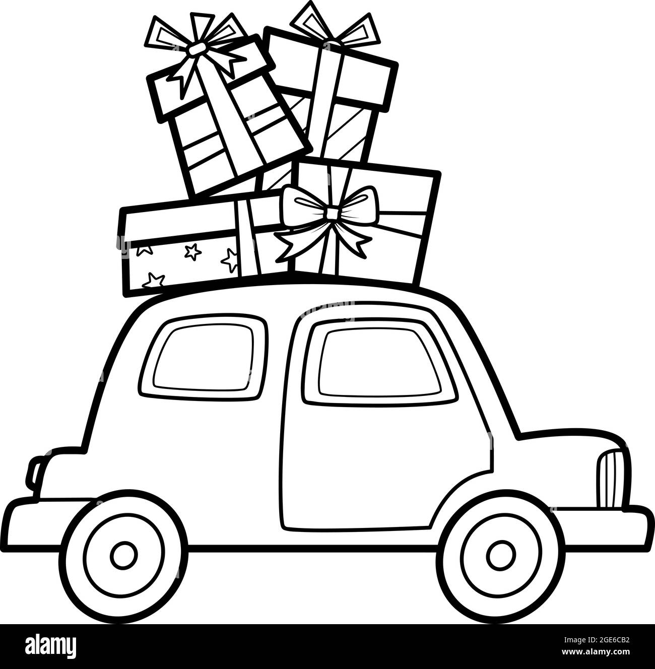 Christmas Coloring Book Or Page For Kids Car And Gifts Black And White Vector Illustration Stock Vector Image Art Alamy