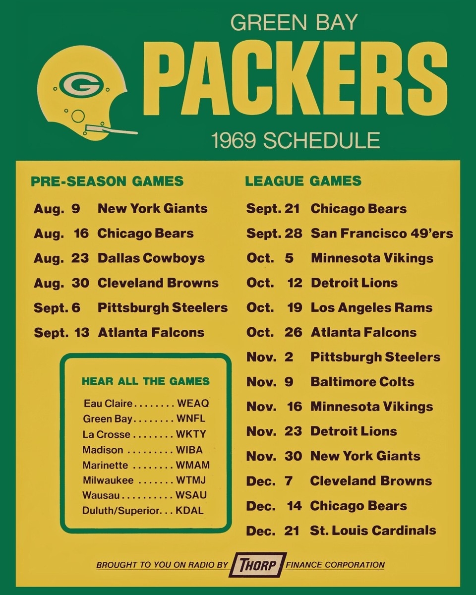 Green Bay Packers 1969 Game Schedule Poster 8×10 Photo EBay