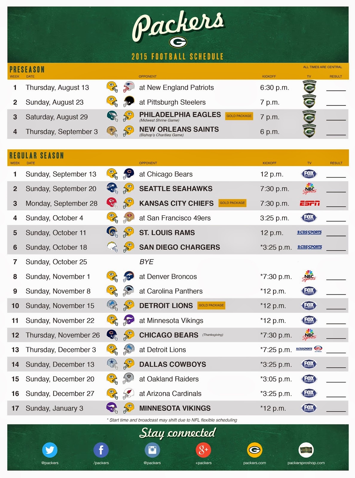 Green Bay Packers Printable Schedule