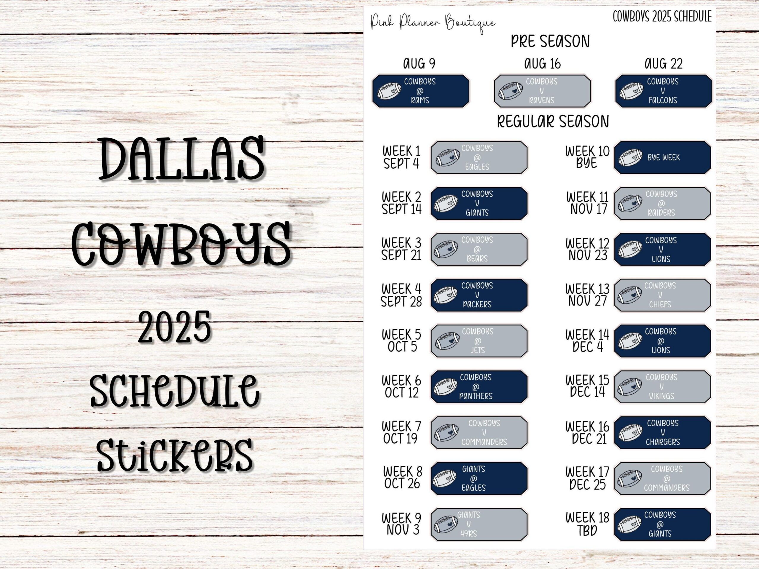 Nfl Cowboys Schedule Etsy