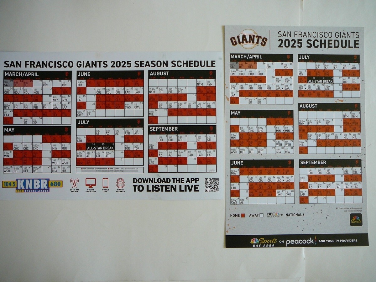 SF GIANTS 2025 AUTHENTIC Fan Schedule CHEER CARD SGA Photo Shows Front Back EBay